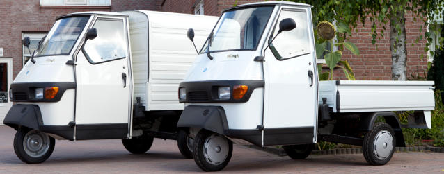 De Ape 50 mix is het enige 3 wiel voertuig, dat dankzij zijn minimale afmetingen zich werkelijk door alle verkeer situaties heen kan manoeuvreren.